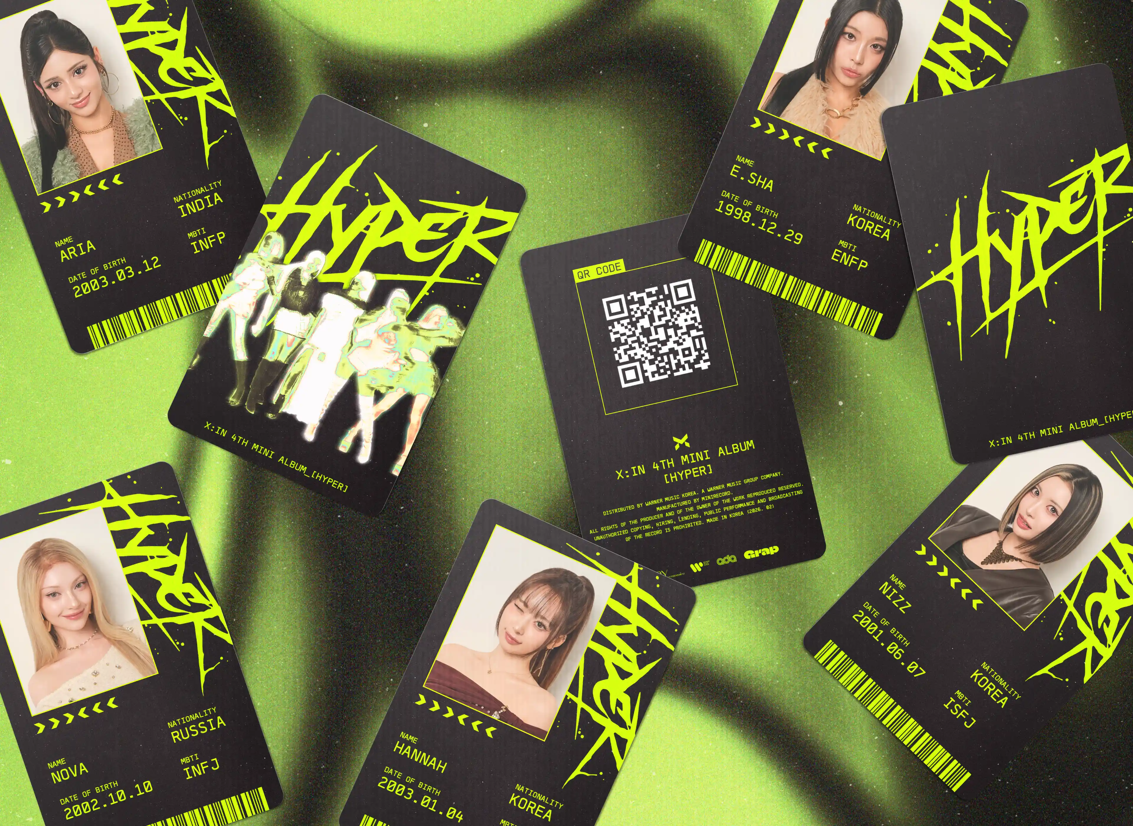 The album HYPER is a project that visually unravels X:IN’s own futurism based on the narrative of them scouting the Earth from the moon. It is composed of thermal imaging graphic elements and layered with surveillance camera motifs and noise/blur effects to create a sense like a "screen under observation." By deploying interface elements in which information is scanned and recorded, the perspective in the world view itself has been built as a design system beyond simple conceptual expression. The album name and track logo are refined to function as a device that complements the alien mood within the entire graphic system, consistently connecting the world view and visuals.